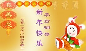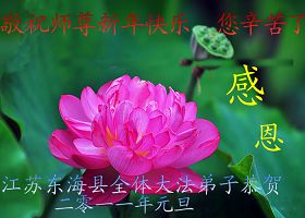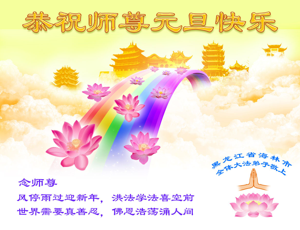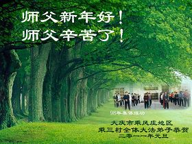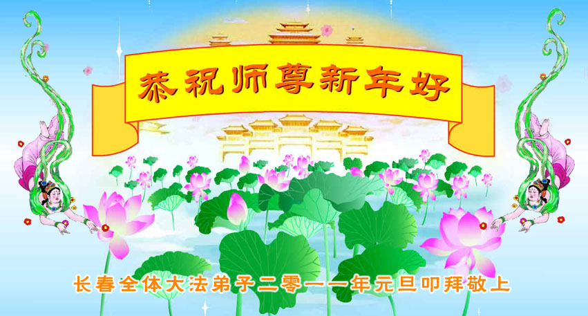 回首走过十一年的正法修炼之路,是师尊牵着我们的手,把我们从跌倒中扶起,一路呵护我们前行。由于以前整体对法理认识不足,吉林市还没能很好的形成整体,给做三件事造成阻碍。在新的一年里我们决心奋起直追,找出不足,放下自我,圆容整体,做好三件事,更好的完成救度这一方众生的使命,让师尊少一份操劳。弟子再一次恭祝师尊新年好!