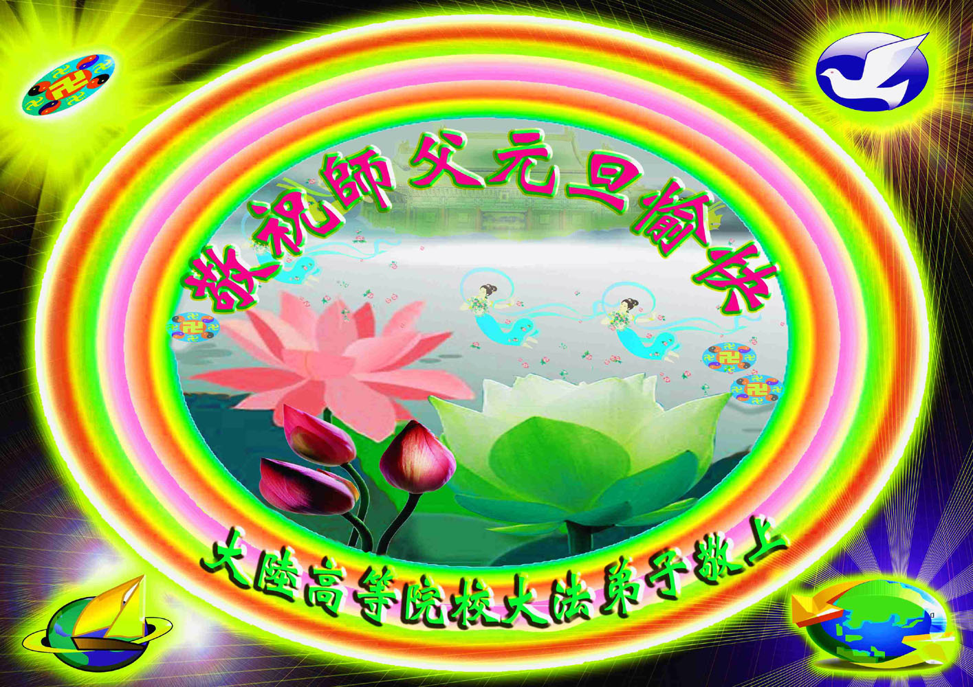 <英文版: http://www.clearwisdom.net/html/articles/2011/1/1/122218.html>贺卡集锦(二):恭祝师尊元旦快乐