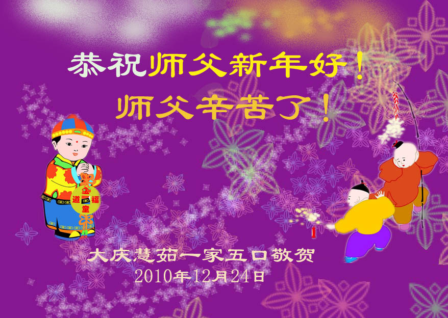 我们全家恭祝师尊新年快乐,喜迎新年。