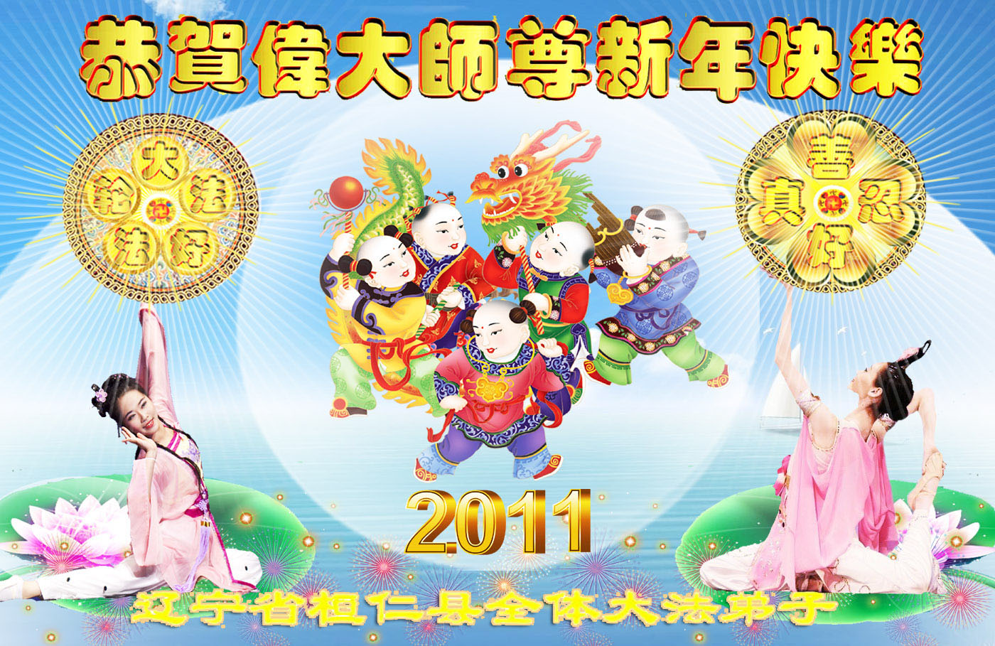 2011年元旦来临之际,吉林省延边朝鲜族自治州的全体大法弟子向慈悲伟大的师尊致以最崇高的敬意!在新的一年里,我们会加倍努力,做好三件事,不辜负师尊对我们的期望!