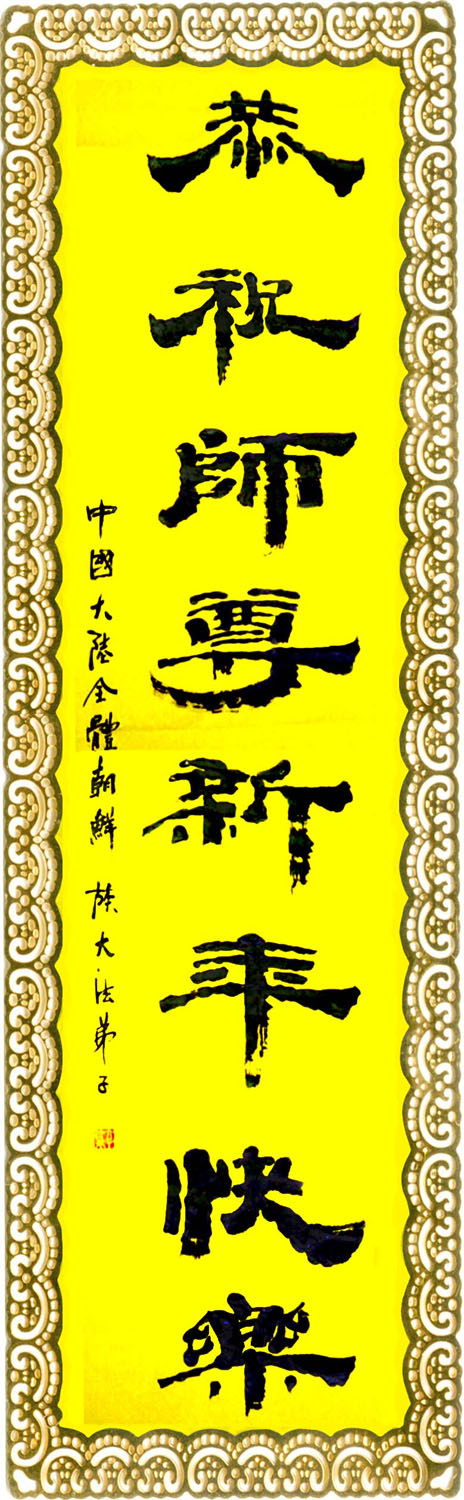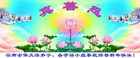 并代表被非法关押在公主岭监狱的外甥、黑嘴子劳教所的姐姐恭祝师尊新年好!