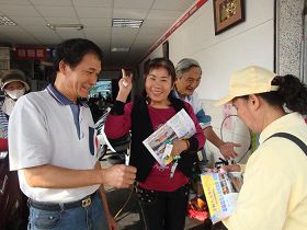 一间车行店家期盼多日,兴奋地从法轮功学员手中接获资料和“法轮大法好”莲花书签。当炼功队伍及腰鼓队进入竹林公园区会场时,司仪介绍法轮功。许乡长在法轮功学员的队伍前接受多家媒体访问并与学员合影留念。