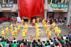 ![]() 法轮功学员组成的腰鼓队受邀揭幕典礼演出 |