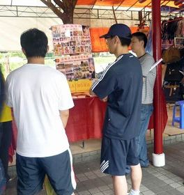 中国新年前,新加坡法轮功学员在唐人街新年市场上设摊向民众讲述法轮功遭中共迫害的真相,其间也有中国同胞前来摊位办理退出中共党、团、队组织。