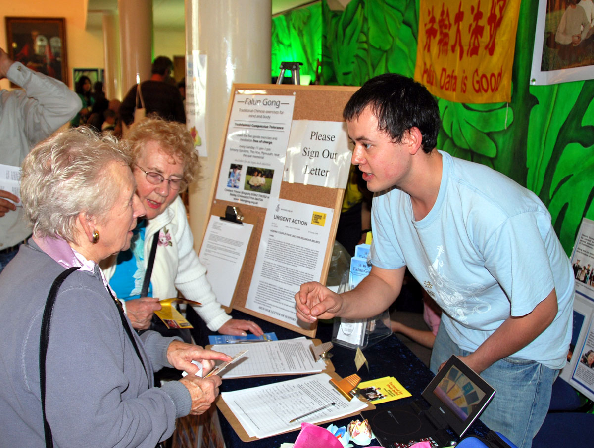 ![]() 罗伯在英国“普利茅斯尊重节”上告诉人们,信仰真善忍的法轮功学员正在遭到中共的迫害 |