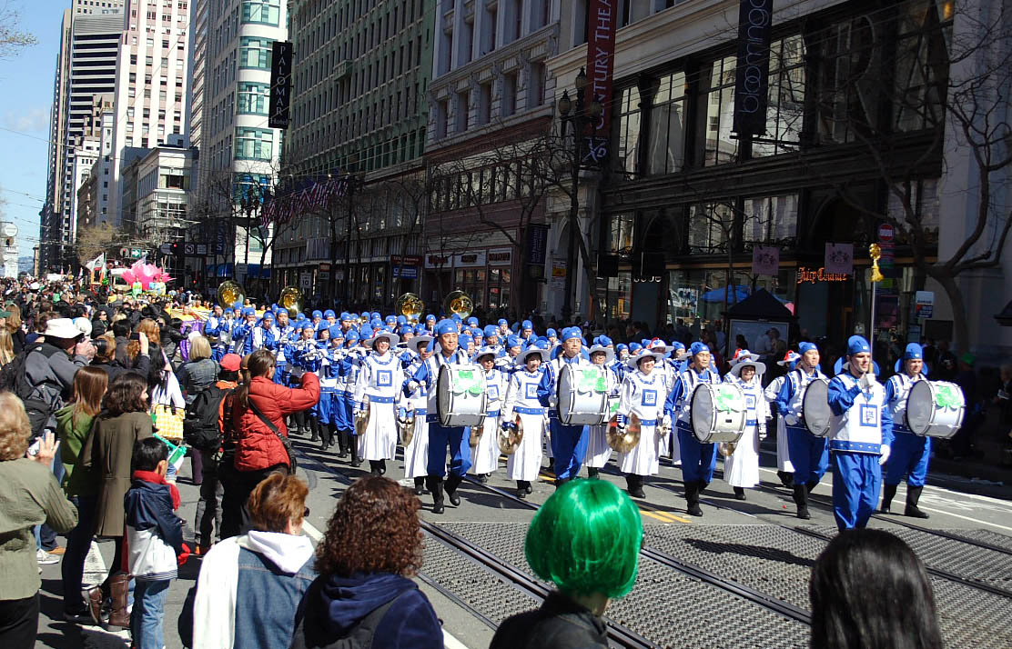 他说,游行队伍中的法轮功天国乐团给人留下深刻的印象,他们的演奏非常杰出。他们的服装也非常优美。他们经常参加圣帕翠克游行,我们非常高兴。