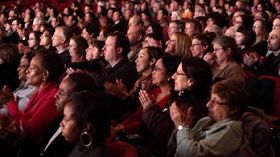 ![]() 热情的观众在罗切斯特大剧场观赏神韵巡回艺术团的演出 |