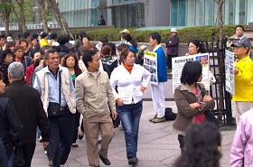 主持人:从当时的照片我们可以看到,法轮功学员过程中都是非常平和的,静静地站在旁边,等待国家信访局的人出来解决问题。