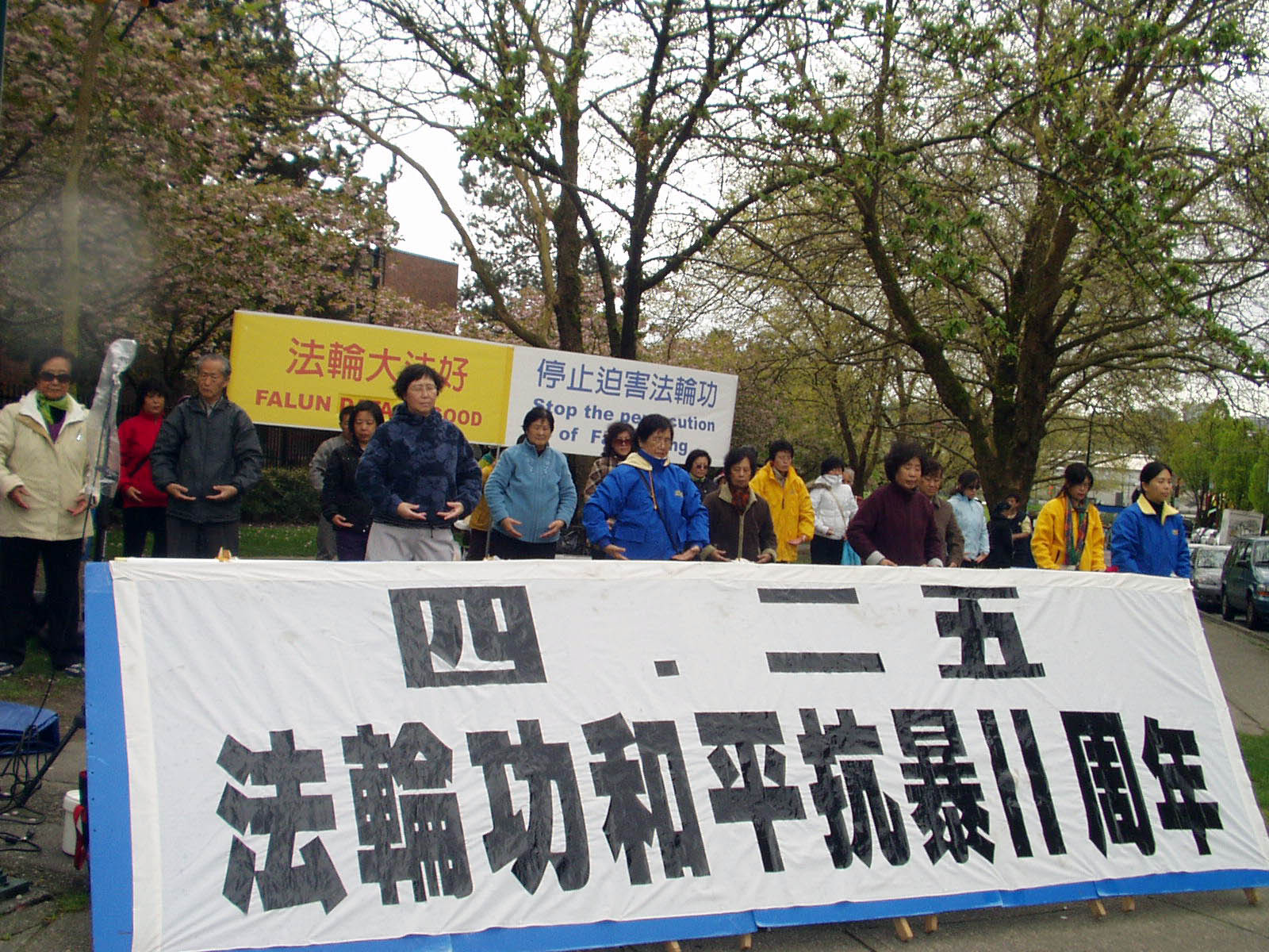 ![]() 法轮功学员在温哥华唐人街集体炼功 |