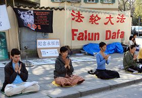 纪念“四•二五” 瑞典学员中领馆前讲真相(图)