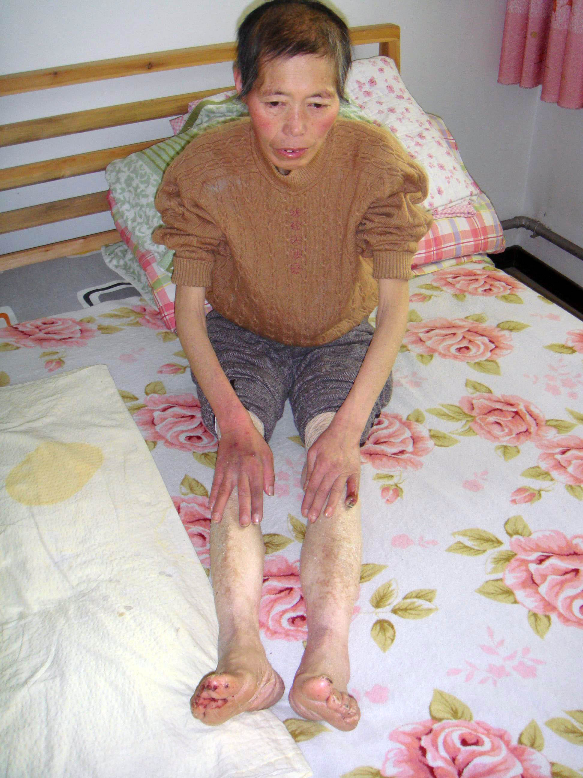 ![]() 田绍艳在马三家教养院被迫害成皮包骨,手脚多处是伤。 |