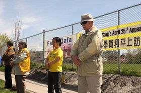 二零一零年四月二十五日上午十点到晚九点, 日本九州地区的法轮功学员分别在福冈和长崎中领馆前,纪念上万名法轮功学员到北京国务院信访办和平上访十一周年,和平、理性地抗议中共对法轮功的残酷迫害。