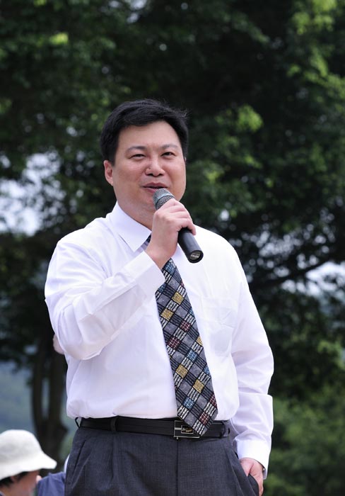 ![]() 日月潭边的晶泽会馆提供庆祝“世界法轮大法日”临湖边的场地,总经理庄理晖代表董事长出席,对法轮功团体表欢迎。 |