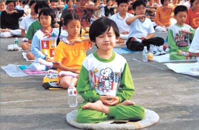 阳曲大法弟子叩拜合十