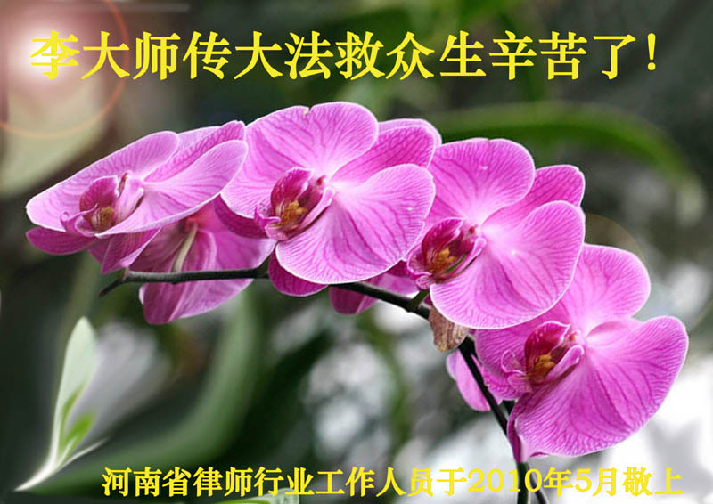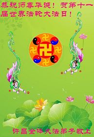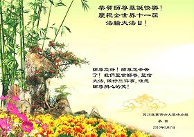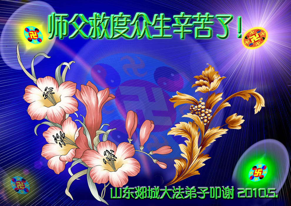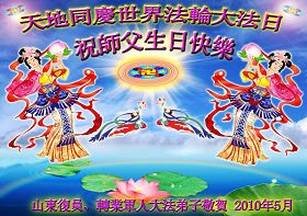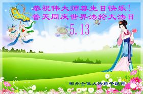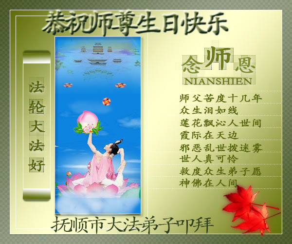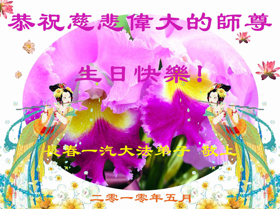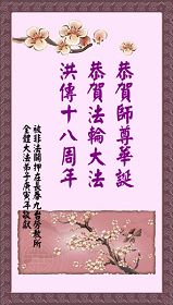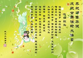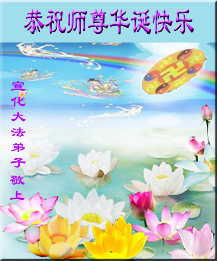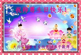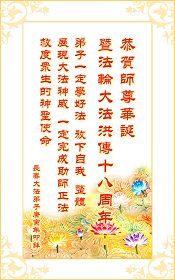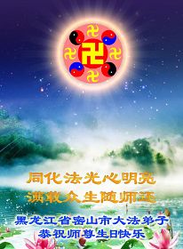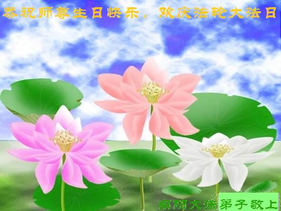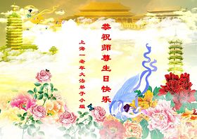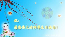 修炼法轮大法以来,师尊不仅给了我们健康的身体,还让我们懂得了人活着的真正目地和当前讲真相救人的重要性。师尊的恩泽一直沐浴着我们。在师尊生日之际,我们叩拜师尊:恭祝师尊生日快乐!请师尊放心,我们一定做好三件事完成史前誓愿,圆满随师还。