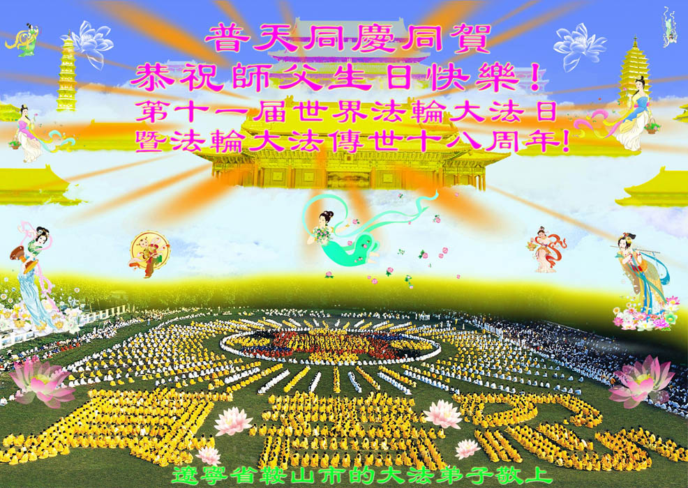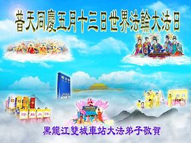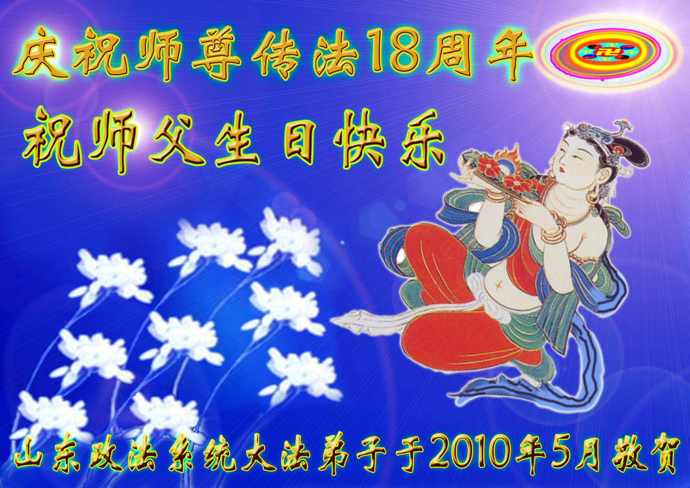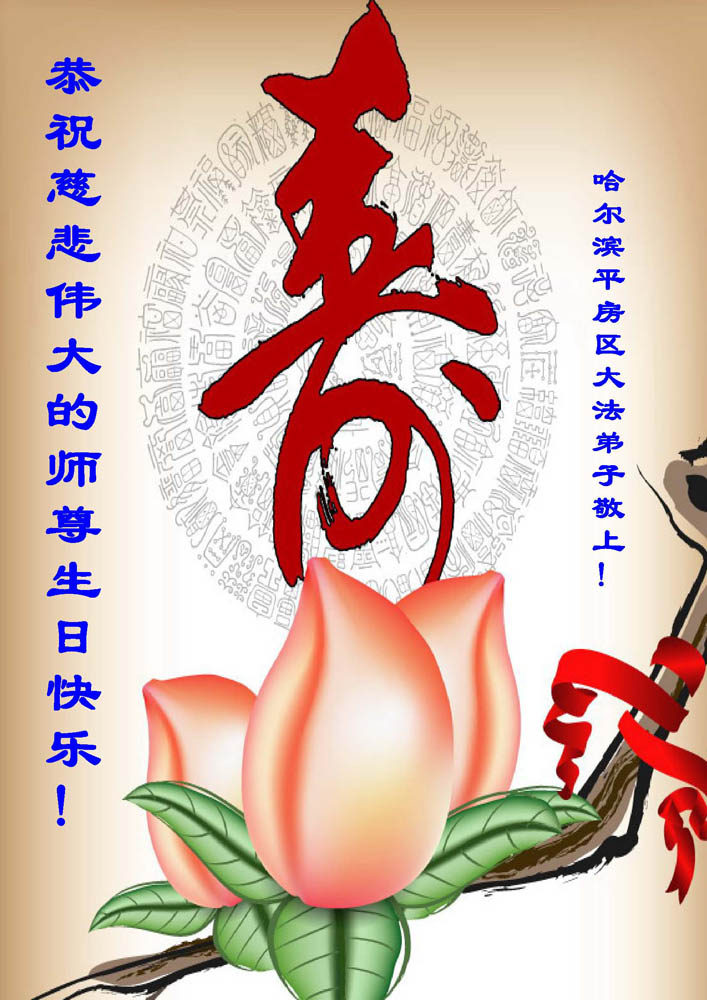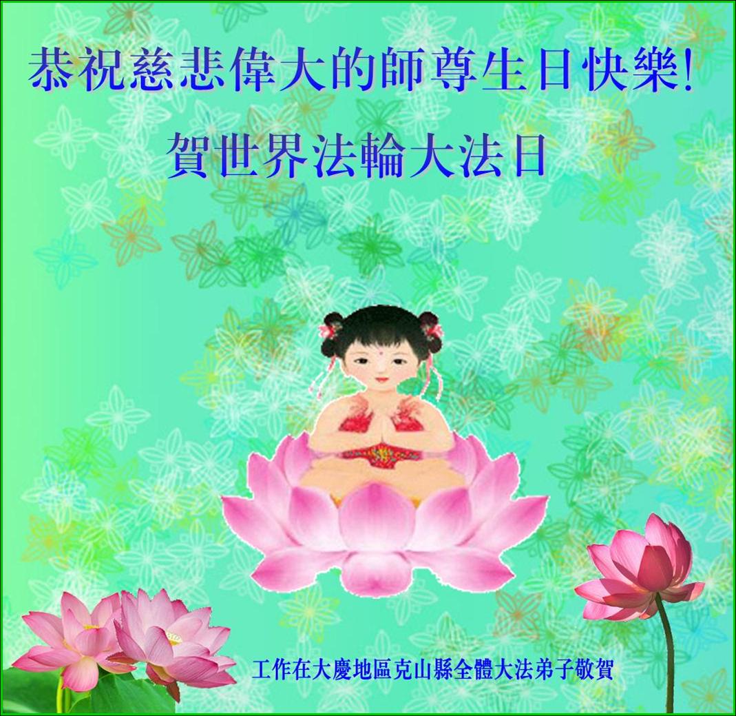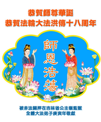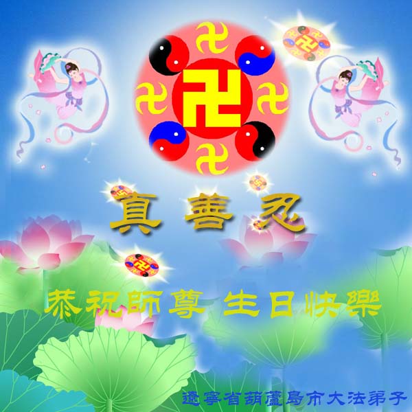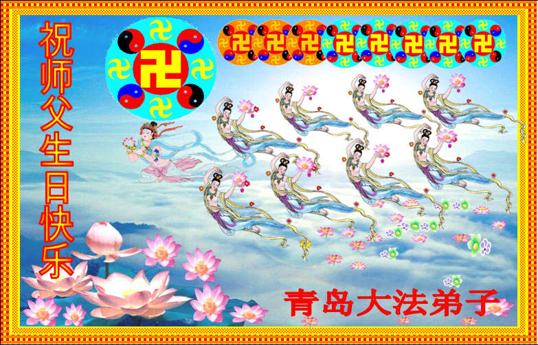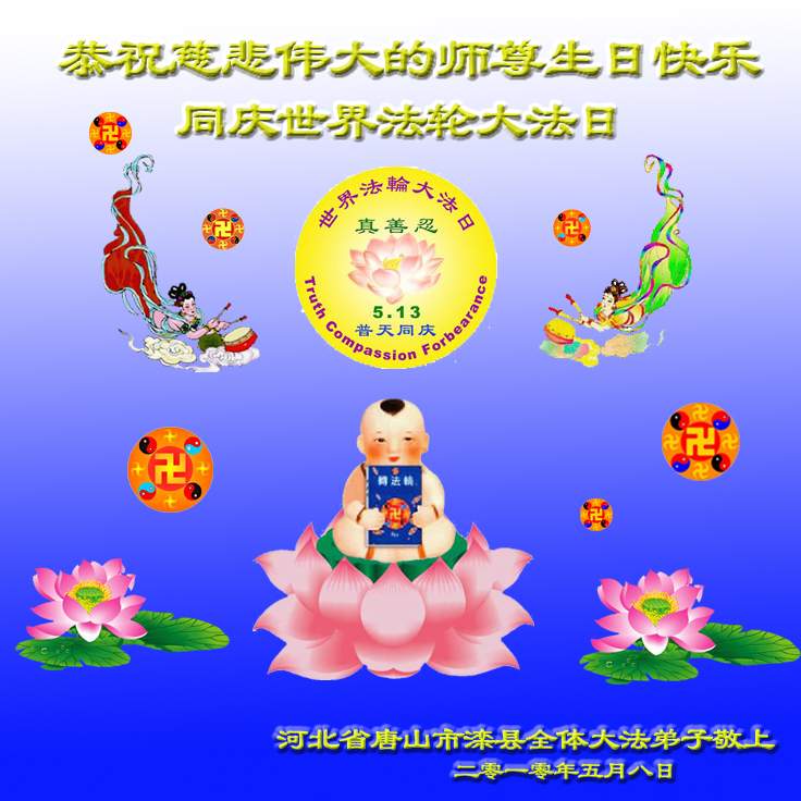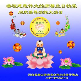 即将迎来师尊的五十九岁华诞和第十一届法轮大法日以及法轮大法洪传十八周年之际,秦皇岛市三区四县全体大法弟子衷心祝愿师尊生日快乐!同时更加精進修好自己,救度更多的众生,努力完成好自己的来世大愿。让师父少一些操劳,多一份安慰。