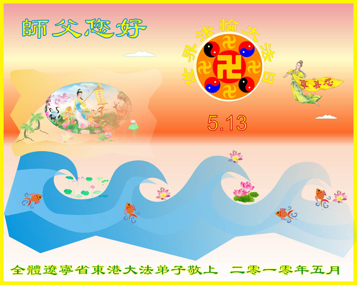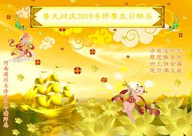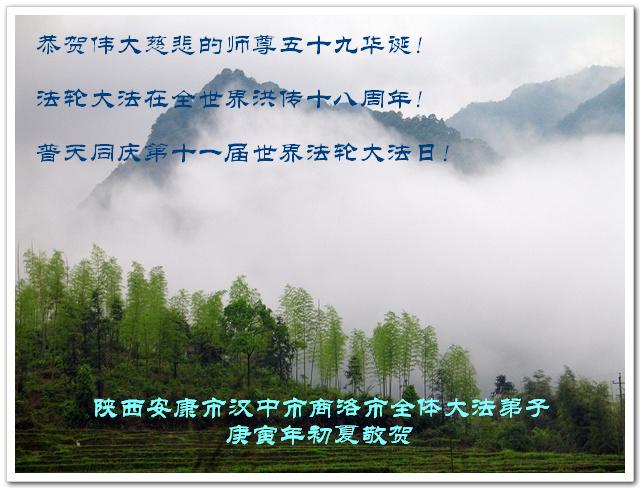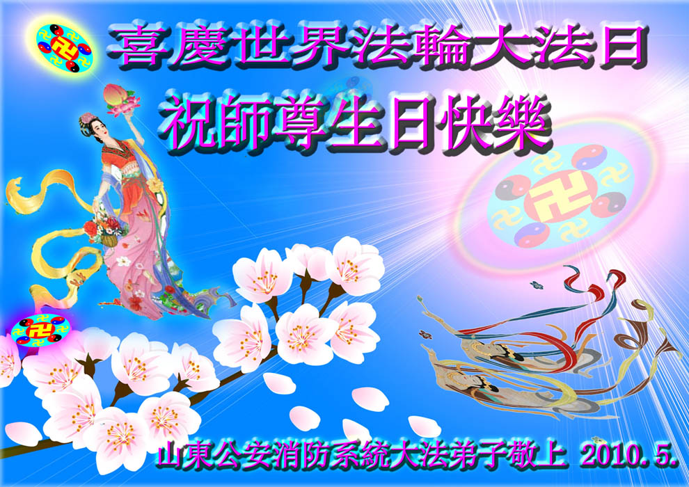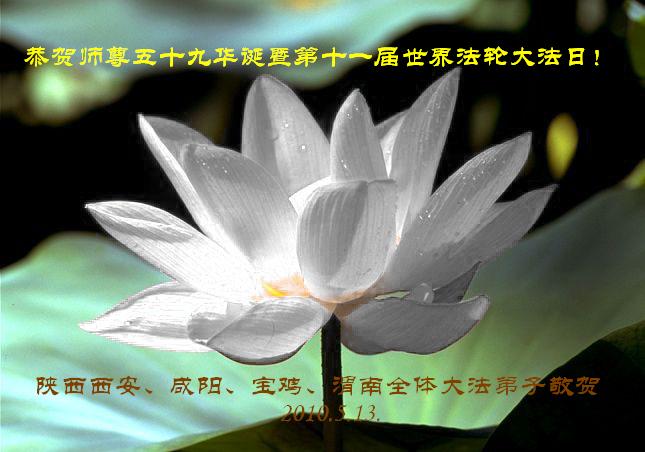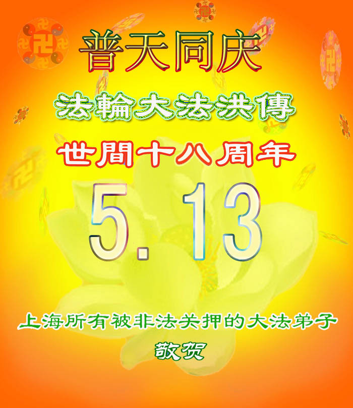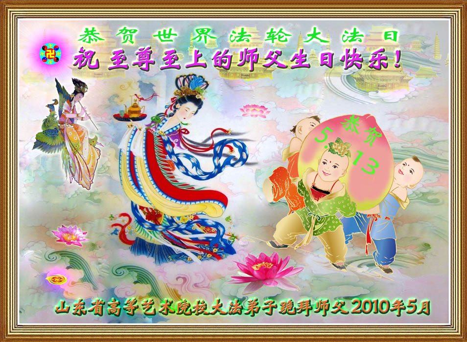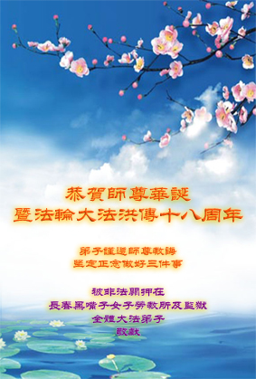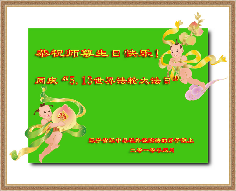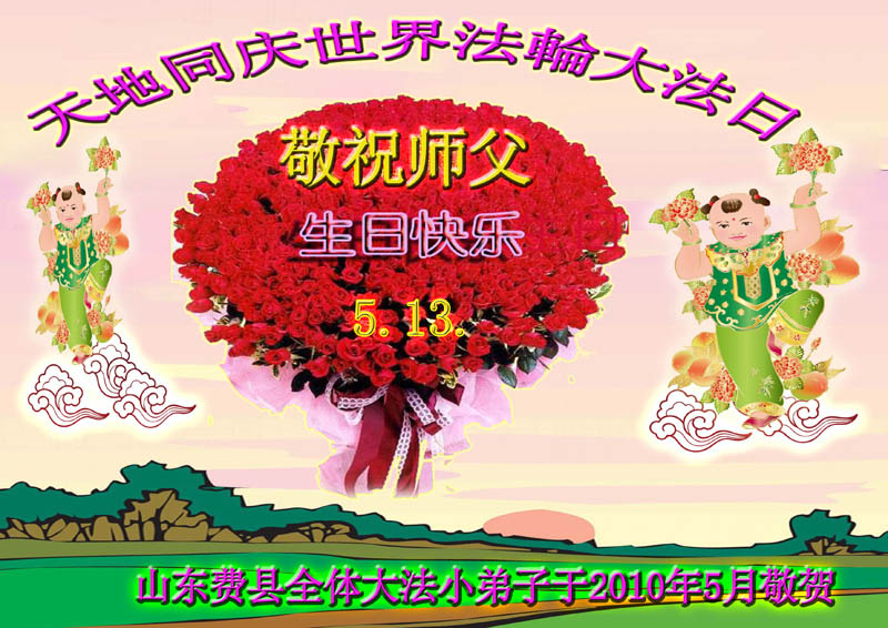 即将迎来师尊的五十九岁华诞和第十一届法轮大法日以及法轮大法洪传十八周年之际,秦皇岛市三区四县全体大法弟子衷心祝愿师尊生日快乐!同时更加精進修好自己,救度更多的众生,努力完成好自己的来世大愿。让师父少一些操劳,多一份安慰。