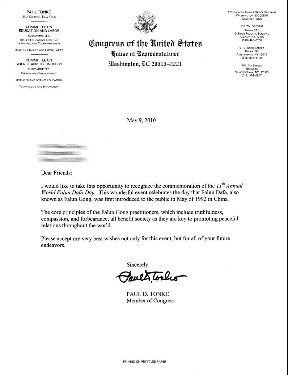 我希望利用这个机会表达我对第十一届世界法轮大法日的赞赏。这个美好的活动庆祝法轮大法,也叫法轮功,一九九二年五月在中国大陆开始传出。