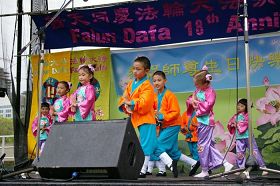 ![]() 法轮功学员表演唐鼓 |