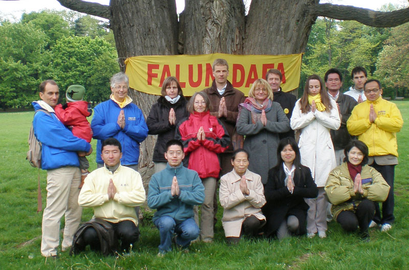 一九九八年五月,法轮功创始人李洪志先生来到法兰克福讲法,这是他第一次在德国讲法,地点在法兰克福棕榈园的会馆里。十几年来,法轮功学员一直在离棕榈园会馆只有一箭地之遥的绿堡公园(Grueneburgpark)里集体炼功。五月十三日这一天,部份法兰克福的法轮功学员来到这里一起炼功、弘法,庆祝法轮大法洪传十八周年。