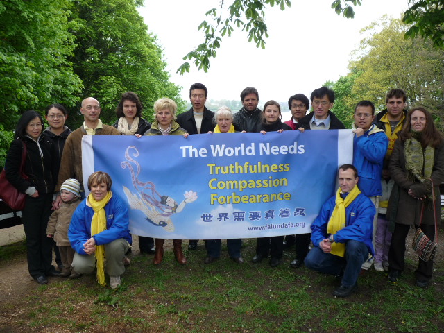 ![]() 部份法兰克福地区学员在法兰克福绿堡公园庆祝法轮大法日,祝师尊生日快乐。 |