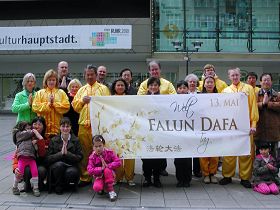埃森(Essen)位于德国西部的北莱茵-威斯特法伦州(Rhein-Westfalen)的鲁尔工业区,五月十五日星期六,鲁尔区部份法轮功学员来到埃森市中心为市民演示功法,并分发关于法轮功在中国无辜被迫害的真相资料,与路人交谈。很多富有正义感的埃森人说,这样的活动应该经常举行,让更多的人知道这场迫害,曝光邪恶。