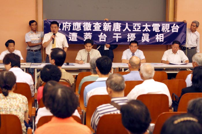 ![]() 提案的江聪渊议员在记者会发言,要求政府相关部门彻查新唐人亚太台遭盖台事件 |