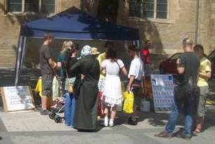 学员告诉渴望了解真相的民众,十一年前的今天,中共在中国发动了对善良的法轮功学员的迫害,如今迫害还在继续,那些失去自由的人需要人们的帮助,很多人听了后都觉得中共象纳粹一样邪恶,这样的罪恶应该马上制止。人们纷纷在呼吁制止迫害的签名簿上签了字。