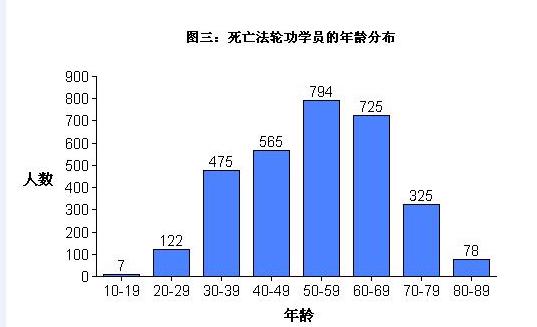 ![]() 死亡法轮功学员的年龄分布 |