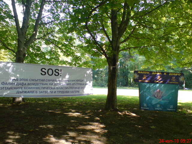 日前,为纪念反迫害十一周年,保加利亚的法轮功学员于二零一零年七月二十日在首都索菲亚(Sofia)和另外两个大城市Plovdiv和Varna向世人讲法轮功的真相,曝光中共迫害的邪恶。期间遇到一位男士,说他在爱尔兰时就碰到过法轮功学员,他已经知道了真相。而两位接了传单的希腊人也记起他们以前曾经在这里遇到过法轮功学员举办类似的活动。几位当地女士发现这是和法轮功有关的活动后立即签名,她们此前已经听说了中共摘取法轮功学员器官的兽行。