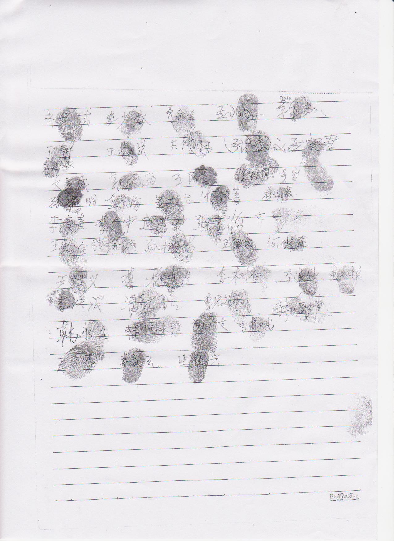 现忠胜村全体村民签字联保,希望政府释放我村的三个村民,让家中老人能够得到赡养。孩子能够正常求学、成长。