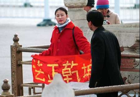 法轮功学员在天安门广场打横幅