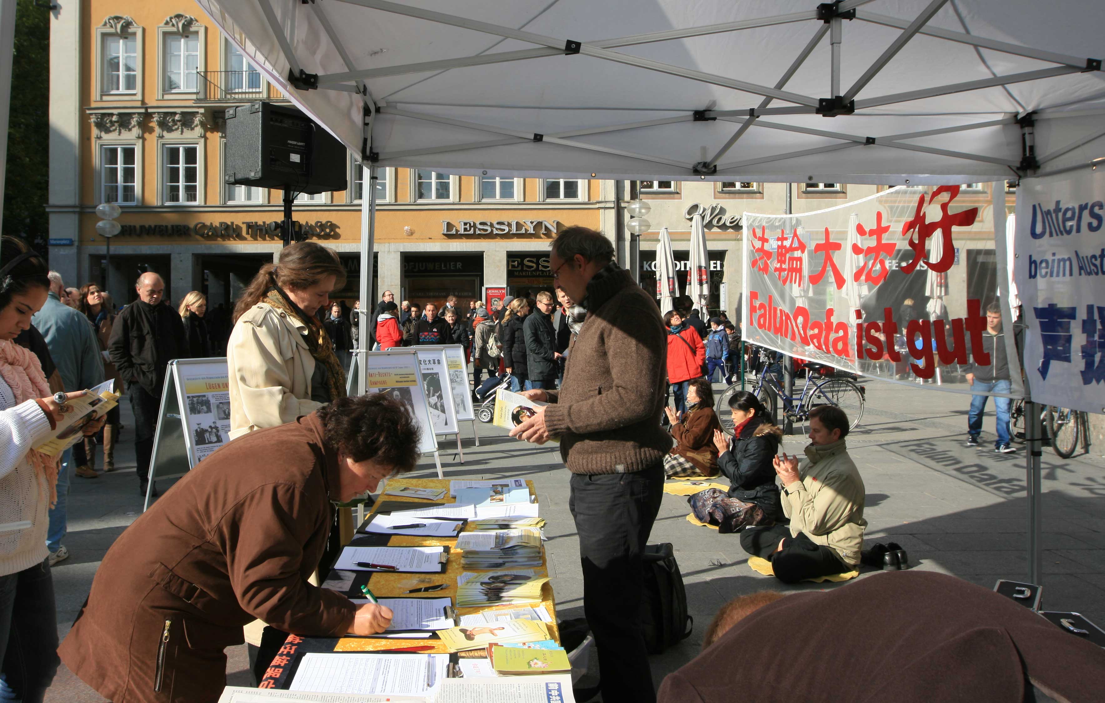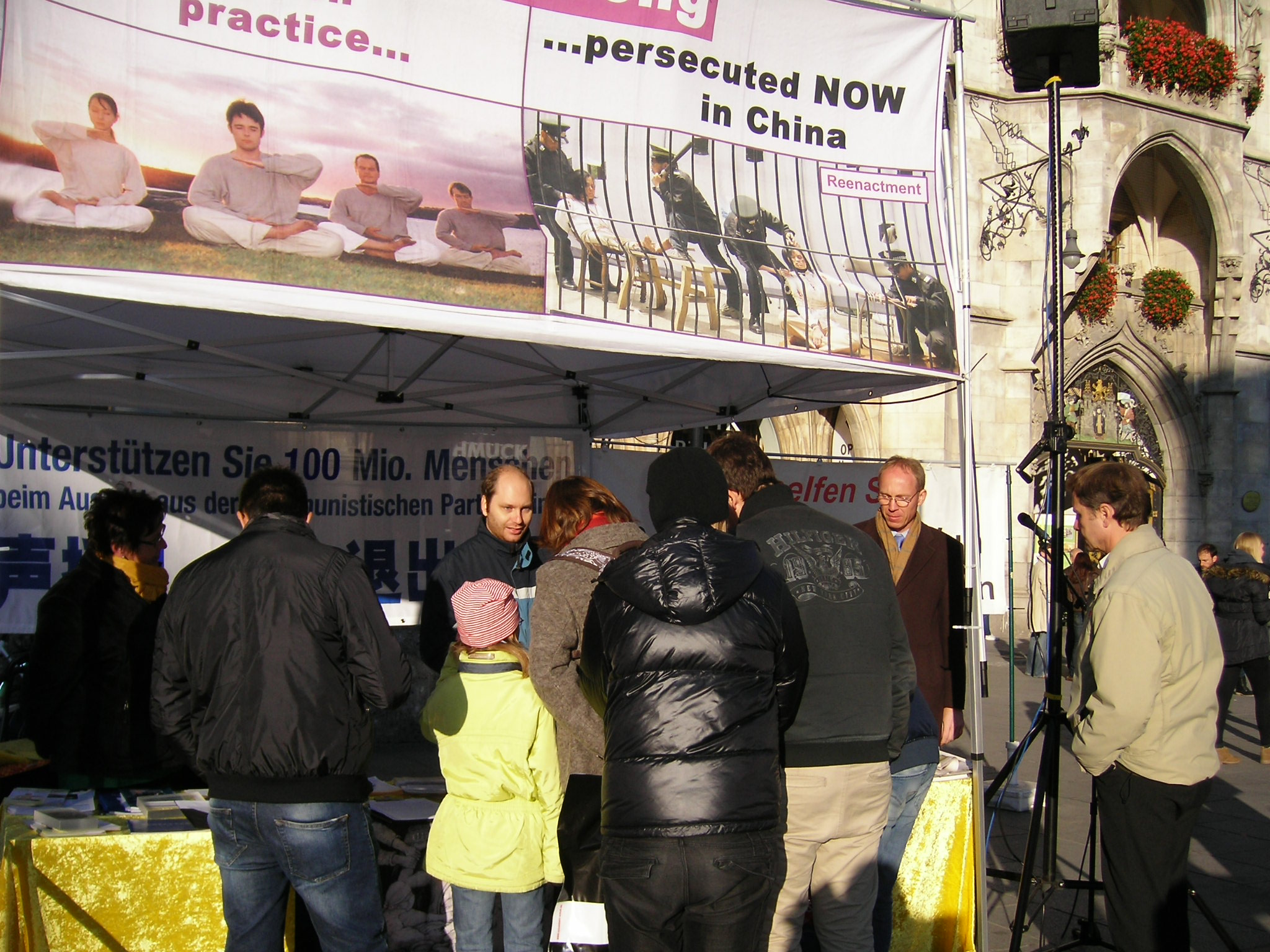 ![]() 慕尼黑法轮功学员举办声援一亿四百万人退出中共活动,并告诉人们法轮功真相。 |