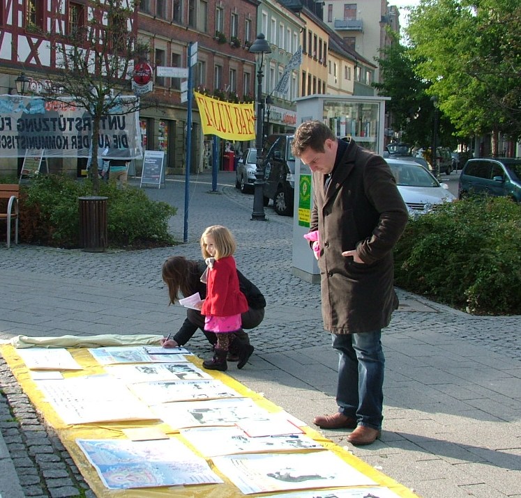 【明慧网二零一一年十一月一日】二零一一年十月二十九日,法轮功学员在德国昆巴赫市(Kulmbach)市中心广场上举办活动,揭露中共对法轮功长达十二年的残酷迫害。