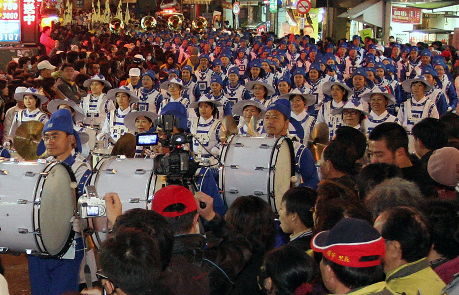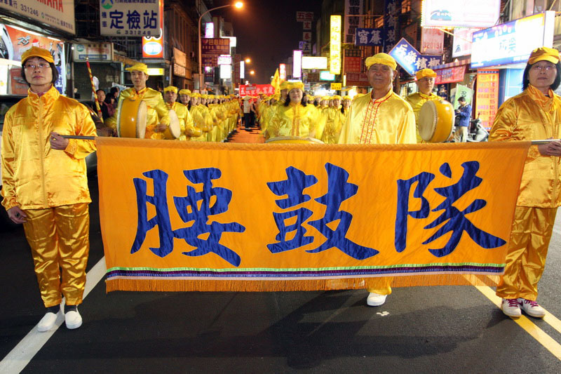 【明慧网二零一一年二月十四日】由法轮功修炼者组成的腰鼓队与天国乐团,二零一一年二月十二日晚间应邀参加台湾苗栗传统客家大节庆“火旁龙踩街”表演,亮丽的服装与壮观的队伍让民众纷纷鼓掌叫好、举着相机拍个不停。
