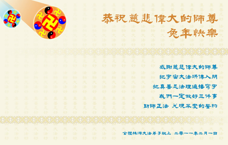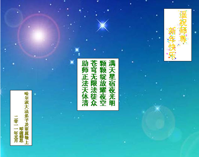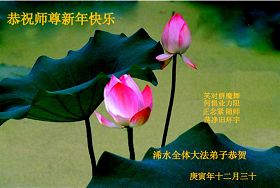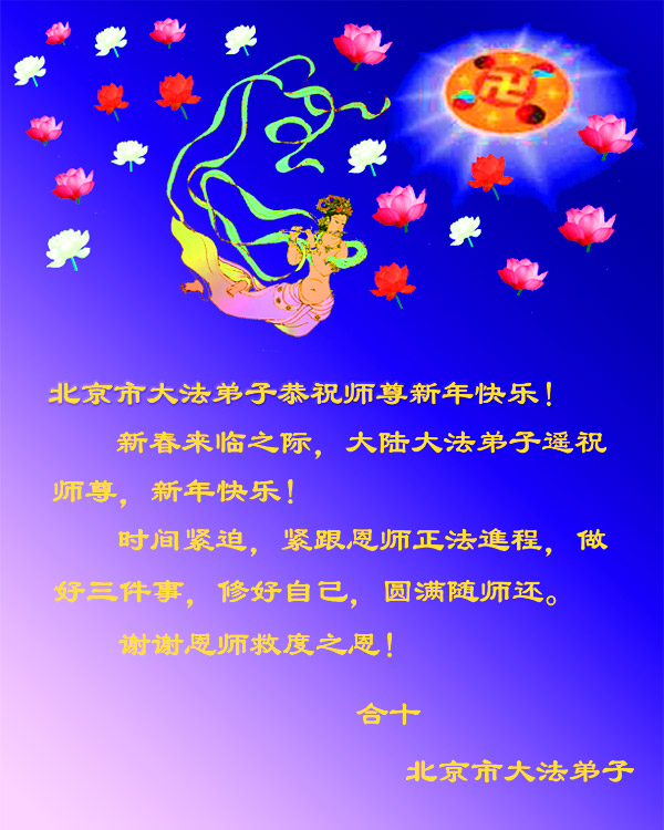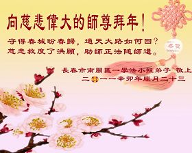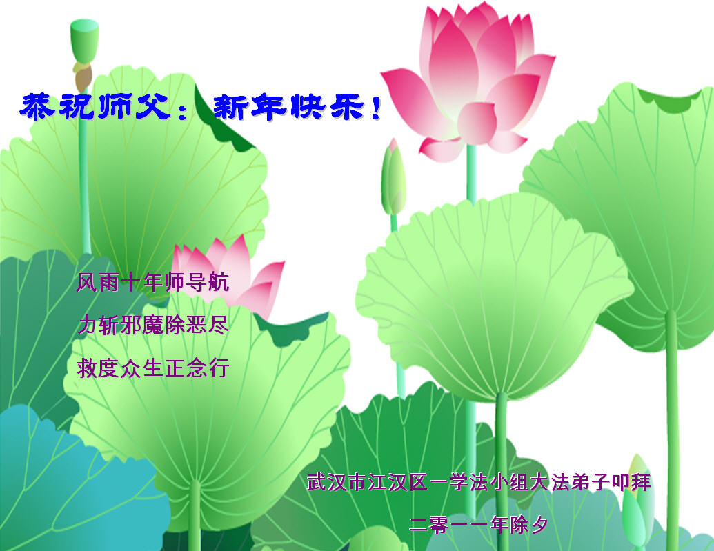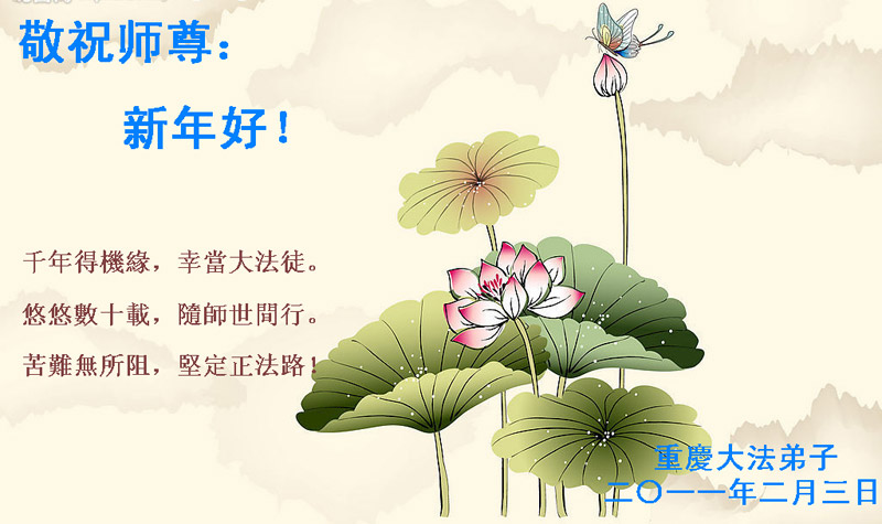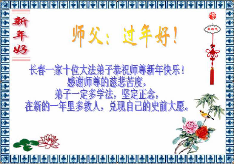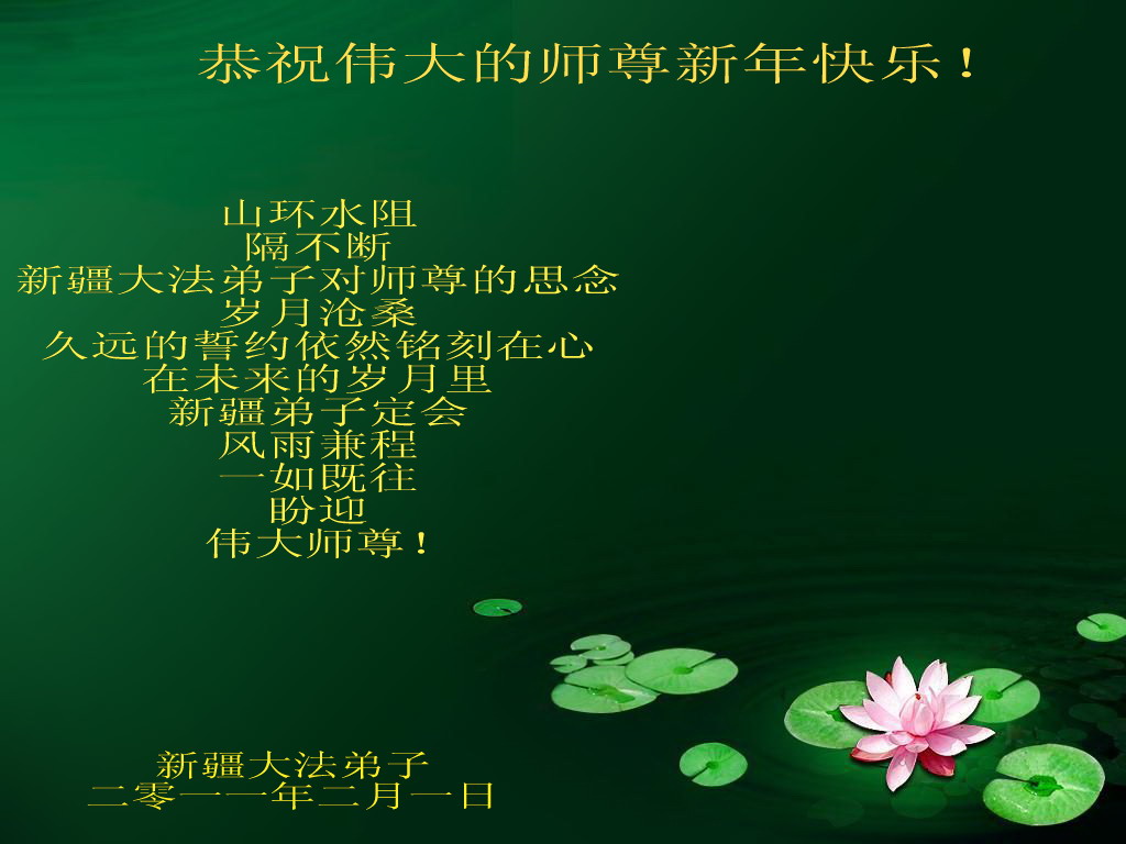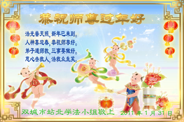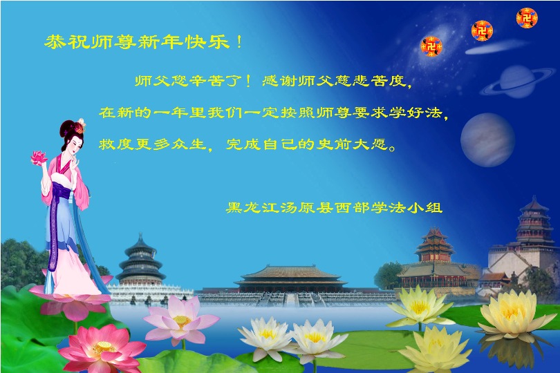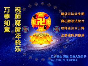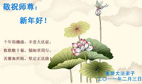 <英文版: http://www.clearwisdom.net/html/articles/2011/2/5/123076.html>大陆大法弟子恭祝师尊新年快乐(十三,236地)