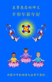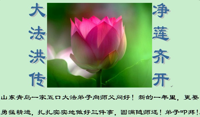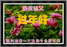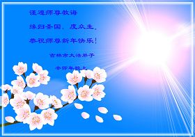 新的一年即将来临,我们全家及在监狱被非法关押的女儿,和学法小组的大法弟子给师尊拜年!我们在师尊的慈悲呵护下走过了反迫害的十一年。回顾走过的路,每一步无不凝聚着师父的艰辛。在新的一年里,要继续做好师父要求的三件事,勇猛精進,圆满随师还。