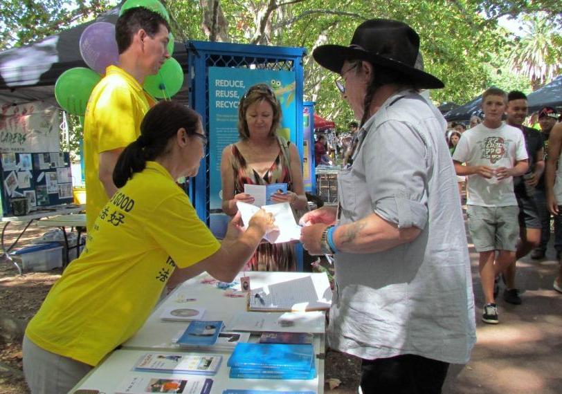 【明慧网二零一一年三月十日】西澳法轮功学员于二零一一年三月六日与七日参加了海德公园社区活动(Hyde Park Community Fair)。一年一度的该项社区活动颇受欢迎,公园里人山人海。许多游人都对法轮功产生了浓厚的兴趣。