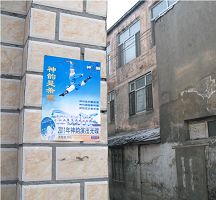 二零一一年二月二十五日下午,我们按照约定好的时间带着投影机,乘坐汽车去四十里外的一个乡镇的村庄,去用大屏幕播放神韵艺术团二零一一年“全球华人新年晚会”光碟。