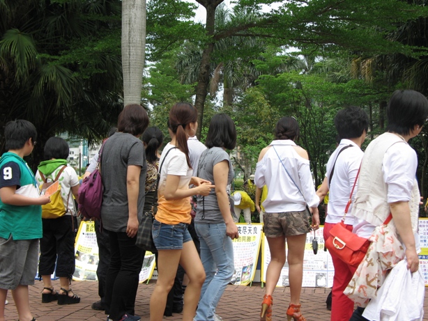 五月的士林官邸花团锦簇,有精致的中、西庭园造景设计,虫鸣鸟叫、景色秀丽,是蒋故总统官邸,自一九九六年开放以来,已成市民及大陆游客休闲游憩的绝佳场所,每天吸引大批游人。许多大陆游客在候车时目不转睛盯着法轮功真相展板,并拿相机拍照,经导游再三促催,迟迟才肯离去,五套教功展示区更是挤满围观的民众,询问如何修炼。