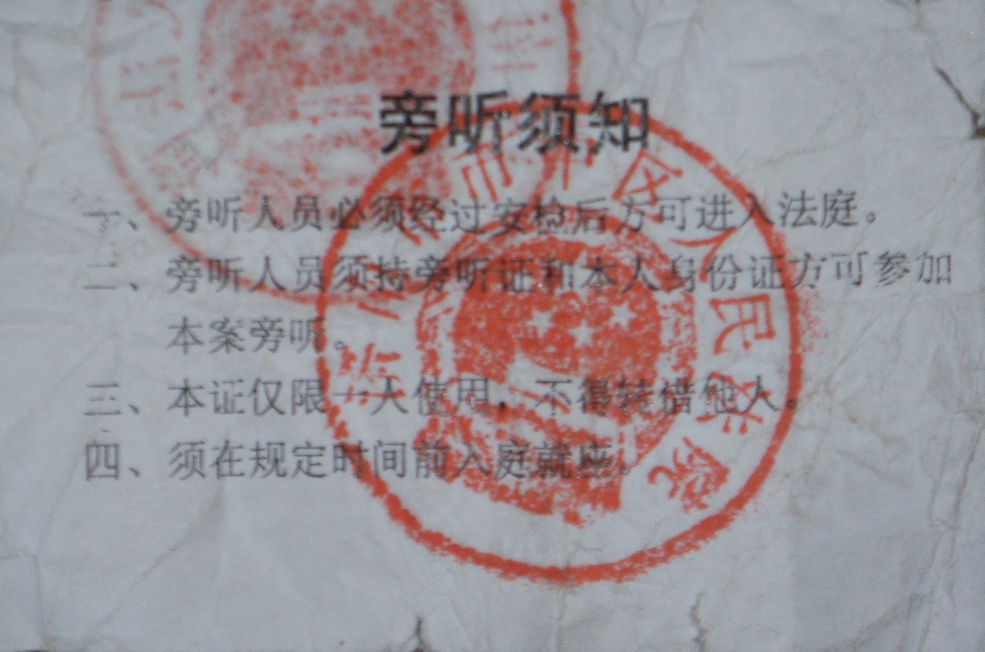 法院虽然于早一日电话告知了田凤玉其女田广青可以旁听,但非法“庭审”的当日,田广青却被以“无旁听证”为理由拒绝入内。
