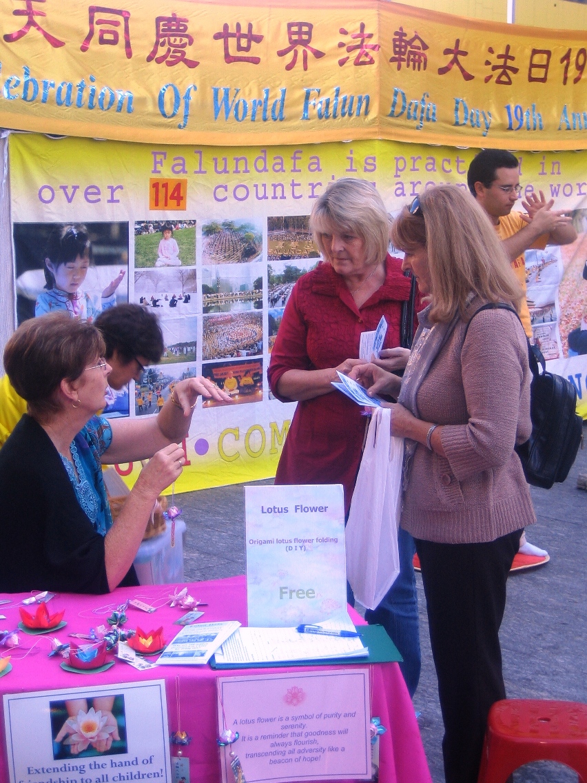 法轮功学员们精心准备的一系类表演让现场观众感受到了“真、善、忍”的美好及平和,许多人在询问:“哪里有炼功点?”“哪里可以买到《转法轮》?”“中共为何迫害法轮功?”