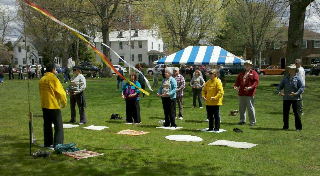 ![]() 波士顿民众驻足观看法轮功功法演示 |