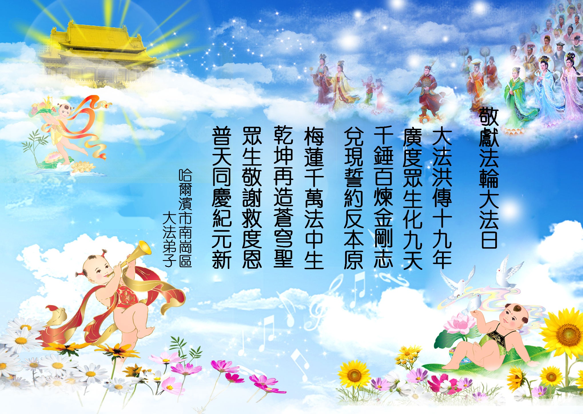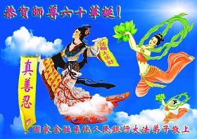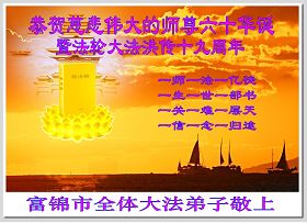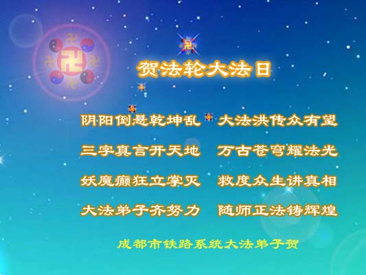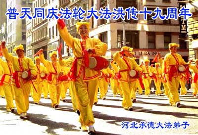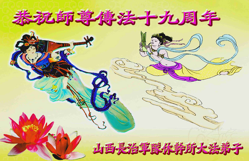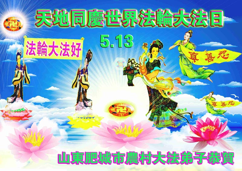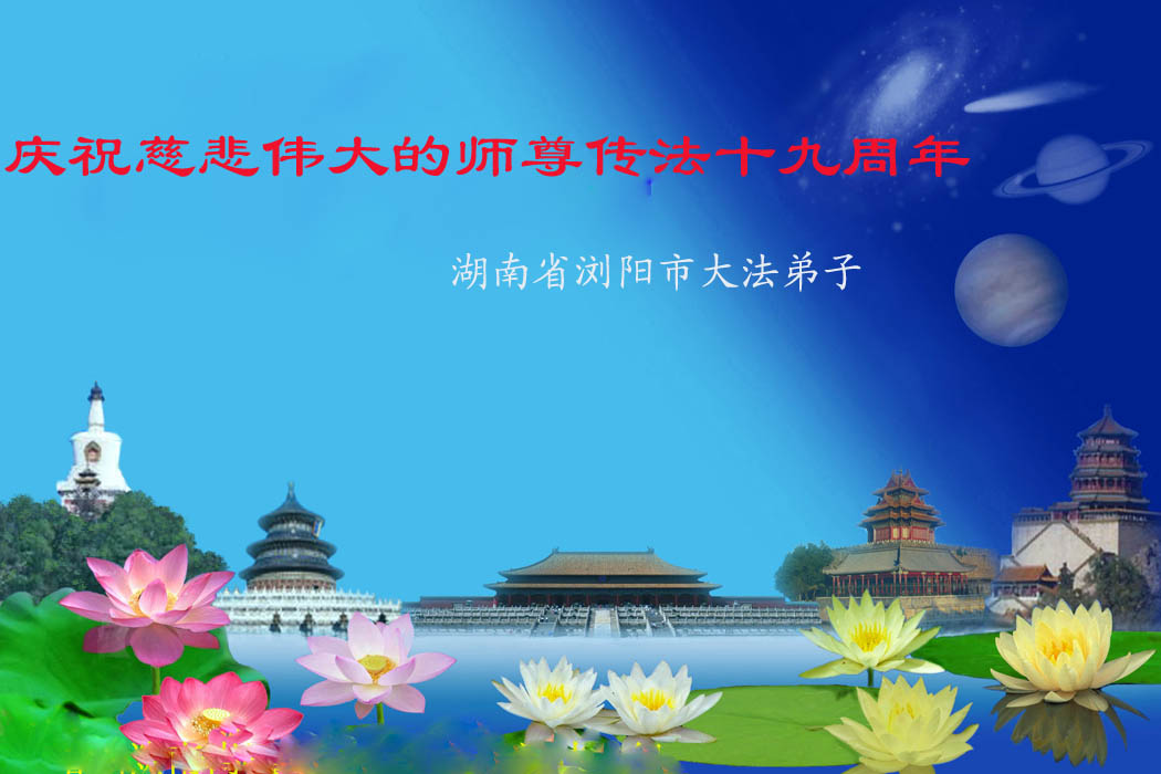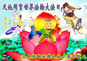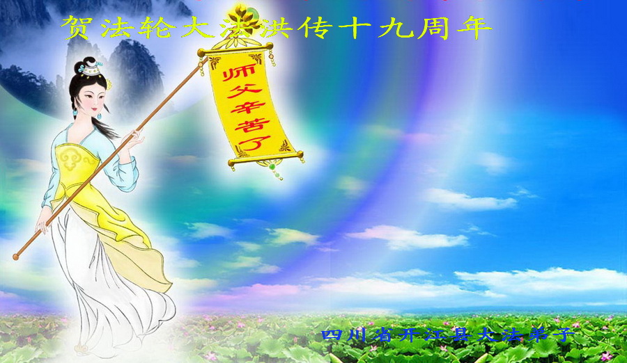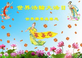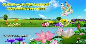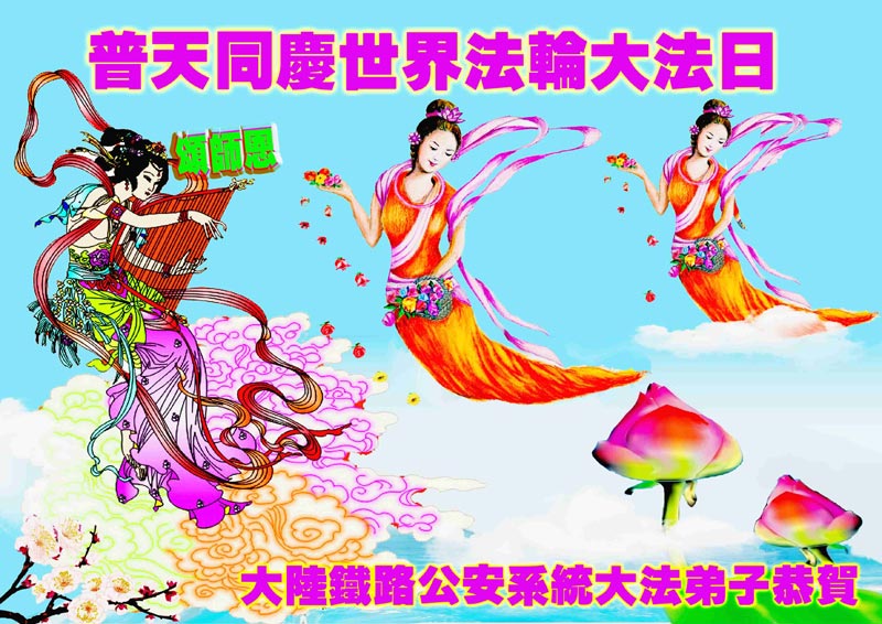 伴随着这种景象,响起了一种奇幻的音乐,并且有着天女散花。那时的我,心中有一种格外的崇敬,感觉是那样的纯正,又是那样的神圣,由衷的在心里唱起了《普度》、《济世》、《法轮大法好》等法轮功乐曲和歌曲。