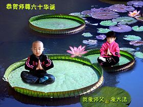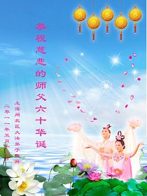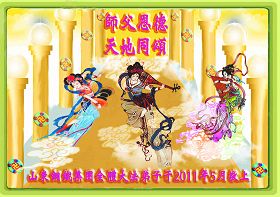 一天,我梦见师父,高高大大的,坐在那里,慈祥的微笑着,我单腿跪靠在身边,仰望着,就觉的师父是自己的父亲,自己是师父的孩子。这是我一生中真正的老师啊!我很兴奋,只知道好,就是百分之百相信师父所讲的一切。我明白了:人来到世间是修炼的,不是来过常人生活的;修炼是不断的去执着心;守德、修心性、修真、善、忍;这位老师非同一般,我心想:现在道德急速的大滑坡,老师是来更新人类的。