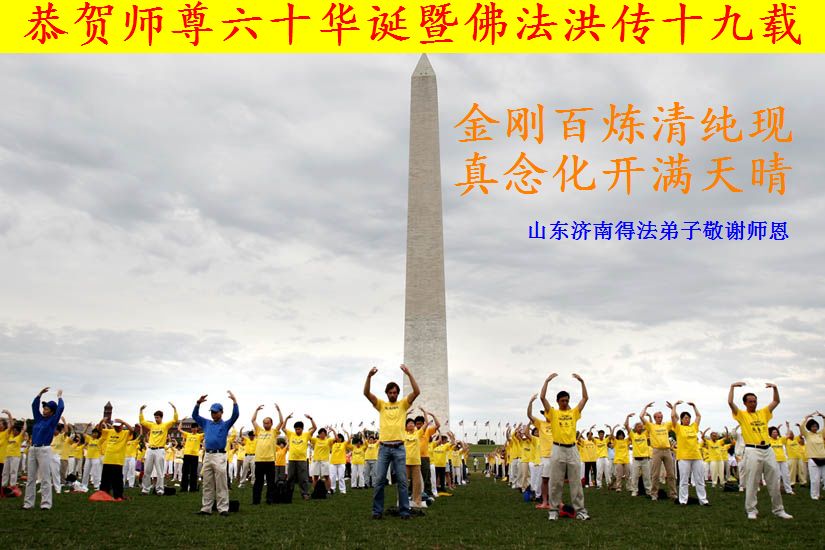 郑州班后,师父紧接着于一九九四年六月二十一日在济南开班,亲自传授大法。地点在济南市皇亭体育馆,参加人数约四千人,主办单位为山东省青年科技文化服务中心。外地跟班的学员非常多,从济南开始就买不着听课的票了。