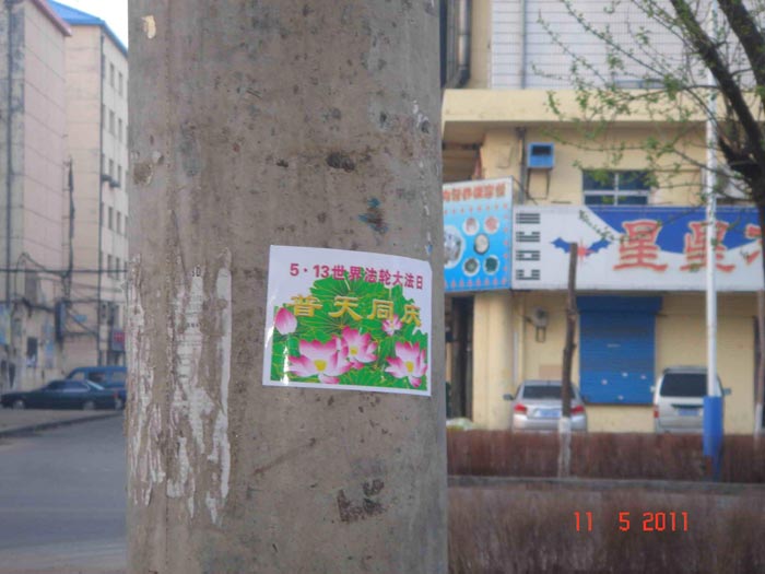 吉林某市大街小巷出现众多“庆祝513”不干胶