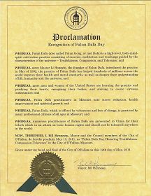 鉴于,所有法轮大法的活动都由志愿者免费提供,密苏里州的许多不同年龄层的专业人士都在炼法轮功;并且