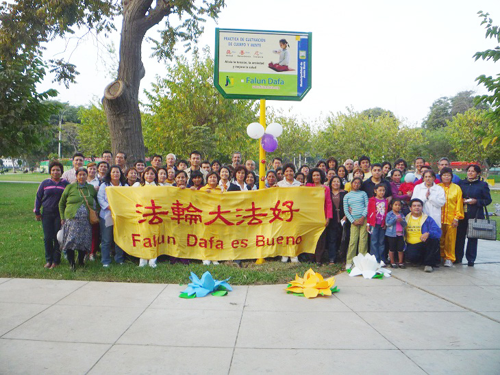 <英文版: http://www.clearwisdom.net/html/articles/2011/5/18/125335.html>庆大法日 秘鲁固定炼功标示牌揭幕