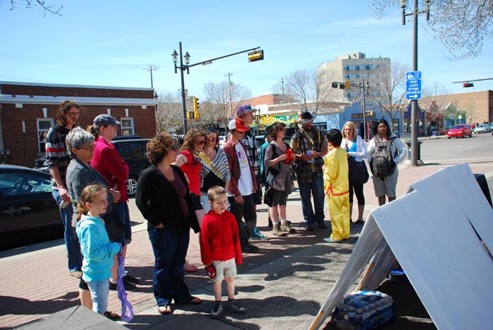 ![]() 法轮功学员的庆祝活动,吸引了众多路人 |